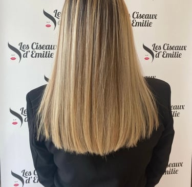 "Nouvelle expérience mais très satisfaisante. Emilie est très agréable et fait du très bon travail. Elle est très professionnelle et à l’écoute de sa clientèle. Elle est soigneuse et appliquée dans son travail. Je renouvellerai l’expérience sans hésiter. Je suis très contente du résultat et n’ai eu que des compliments sur ma coiffure couleur et mèches blondes sublimées par des boucles retombantes sur le visage et rehausser d’un chignon qui a tenue de 8H à minuit et brushing parfait utilisant des produits de marque pour ne pas agresser les cheveux. Efficace, douce , je le recommande et les prix sont abordables sans fausse surprise."